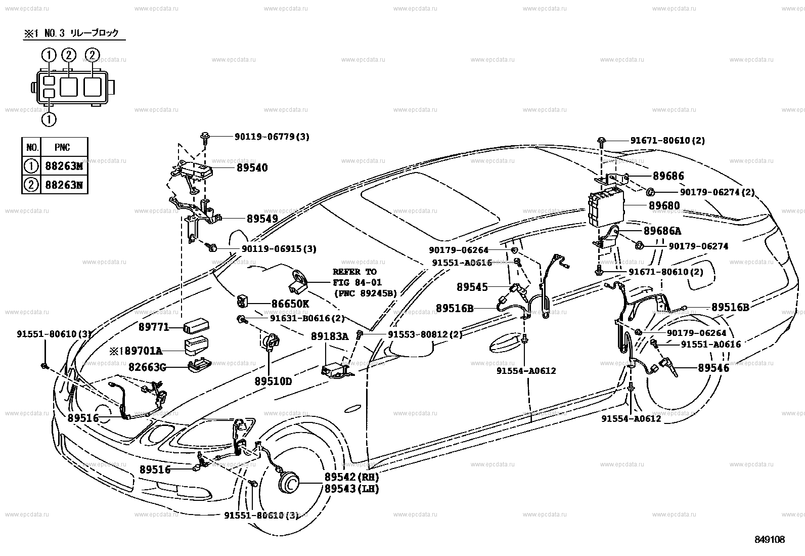 Click part number in the scheme or in the list: 88263M RELAY, ABS SOLENOID88263N RELAY, ABS MOTOR 91554A0612 ** Std Part 9017906274 ** Std Part 89546 SENSOR, SPEED, REAR LH 9017906264 ** Std Part 89516B WIRE, SKID CONTROL SENSOR 89686A BRACKET, BRAKE CONTROL POWER SUPPLY, NO.1 89510D SENSOR ASSY, BRAKE PEDAL STROKE 89701A BLOCK SUB-ASSY, ABS RELAY 89545 SENSOR, SPEED, REAR RH 89680 SUPPLY ASSY, BRAKE CONTROL POWER 89686 BRACKET, BRAKE CONTROL POWER SUPPLY, NO.1 91551A0616 ** Std Part 9167180610 ** Std Part 9011906779 ** Std Part 91631B0616 ** Std Part 89549 BRACKET, SKID CONTROL COMPUTER 89540 COMPUTER ASSY, SKID CONTROL 89516 WIRE, SKID CONTROL SENSOR 9155180610 ** Std Part 89542 SENSOR, SPEED, FRONT RH 89543 SENSOR, SPEED, FRONT LH 86650K BUZZER ASSY, SKID CONTROL 9011906915 ** Std Part 89183A SENSOR, YAWRATE 9155380812 ** Std Part 82663G COVER, RELAY BLOCK, LOWER 89771 COVER, ABS RELAY BLOCK, UPPER ** 84-01 |