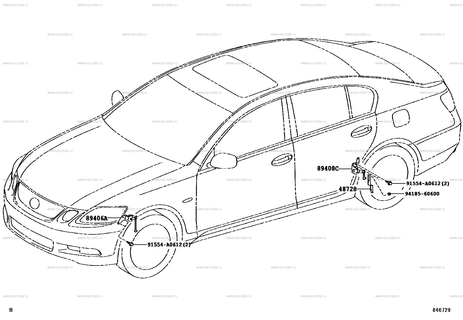 Click part number in the scheme or in the list: 89408C SENSOR SUB-ASSY, HEIGHT CONTROL, REAR LH48728 BRACKET, LOAD SENSING VALVE SENSOR 9418560600 ** Std Part 89406A SENSOR SUB-ASSY, HEIGHT CONTROL, FRONT LH 91554A0612 ** Std Part |