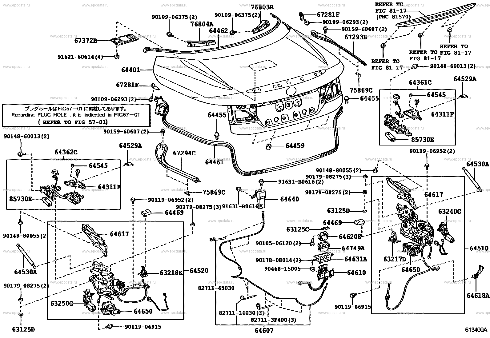 ** 81-17 ** 57-01 63125C SHIM, LUGGAGE DOOR 63125D SHIM, LUGGAGE DOOR, NO.2 63217D HOOK, REMOVABLE ROOF AUXILIARY, RH 63218K HOOK, REMOVABLE ROOF AUXILIARY 63240G GEAR ASSY, LUGGAGE DOOR DRIVE, RH 63250G GEAR ASSY, LUGGAGE DOOR DRIVE, LH 64311F PANEL, PACKAGE TRAY 64361C HINGE, PACKAGE TRAY TRIM, NO.1 64362C HINGE, PACKAGE TRAY TRIM, NO.2 64401 PANEL SUB-ASSY, LUGGAGE COMPARTMENT DOOR 64455 CUSHION, LUGGAGE COMPARTMENT DOOR SIDE, RH 64459 CUSHION, LUGGAGE COMPARTMENT DOOR 64461 WEATHERSTRIP, LUGGAGE COMPARTMENT DOOR 64462 WEATHERSTRIP, LUGGAGE COMPARTMENT DOOR 64469 CUSHION, LUGGAGE COMPARTMENT DOOR, NO.2 64510 HINGE ASSY, LUGGAGE COMPARTMENT DOOR, RH 64520 HINGE ASSY, LUGGAGE COMPARTMENT DOOR, LH 64530A SUPPORT ASSY, LUGGAGE COMPARTMENT DOOR 64545 CUSHION, LUGGAGE DOOR HINGE 64607 CABLE SUB-ASSY, LUGGAGE DOOR LOCK CONTROL 64610 LOCK ASSY, LUGGAGE COMPARTMENT DOOR 64617 LINK, LUGGAGE COMPARTMENT DOOR LOCK 64618A CLAMP, LUGGAGE LOCK CONTROL CABLE 64620E STRIKER ASSY, LUGGAGE COMPARTMENT DOOR 64631A PROTECTOR, LUGGAGE DOOR LOCK 64640 OPENER ASSY, LUGGAGE DOOR LOCK 64650 CLOSER ASSY, LUGGAGE DOOR 64749A COVER, LUGGAGE COMPARTMENT DOOR STRIKER 67281F STOPPER, BACK DOOR, LOWER 67293B CUSHION, BACK DOOR STOPPER, RH 67294C CUSHION, BACK DOOR STOPPER, LH 67372B WEIGHT, LUGGAGE DOOR 75869C RETAINER, QUARTER OPENING, LH 76803B GARNISH SUB-ASSY, LUGGAGE DOOR, OUTSIDE UPPER RH 76804A GARNISH SUB-ASSY, LUGGAGE DOOR, OUTSIDE UPPER LH 85730E MOTOR ASSY, SLIDE ROOF 8271116830 ** Std Part 827113F400 ** Std Part 8271145030 ** Std Part 9010506120 ** Std Part 9010906293 ** Std Part 9010906375 ** Std Part 9011906952 ** Std Part 9011906915 ** Std Part 9014880055 ** Std Part 9014860013 ** Std Part 9015960607 ** Std Part 9017808014 ** Std Part 9017908275 ** Std Part 9046815005 ** Std Part 9162160614 ** Std Part 91631B0616 ** Std Part 64529A SHIM, LUGGAGE COMPARTMENT DOOR HINGE |
