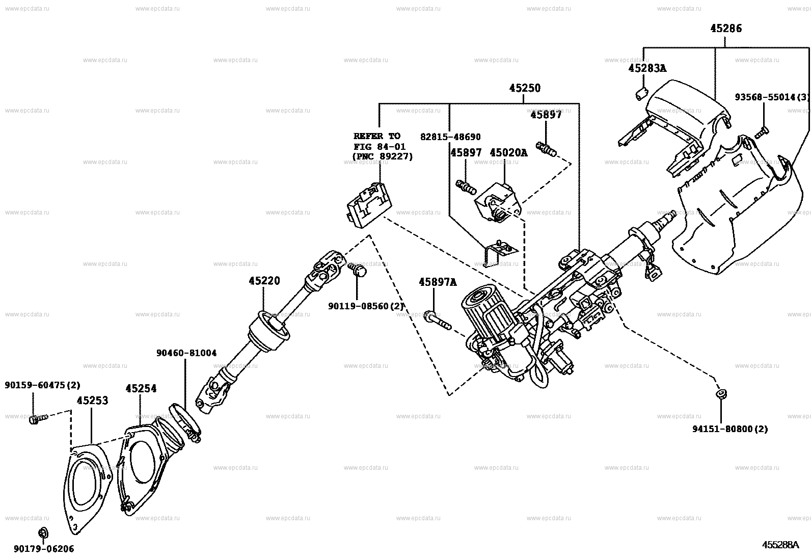 Click part number in the scheme or in the list: ** 84-0145897A BOLT, TILT STEERING PAWL SET 45897 BOLT, STEERING LOCK SET 45250 COLUMN ASSY, STEERING 45286 COVER, STEERING COLUMN 45283A PLATE, BEAM CHANGE & TURN SIGNAL CAUTION 45220 SHAFT ASSY, STEERING INTERMEDIATE 45254 SHIELD, STEERING COLUMN HOLE 45253 COVER, STEERING COLUMN HOLE 45020A ACTUATOR ASSY, STEERING LOCK 9046081004 ** Std Part 9415180800 ** Std Part 9017906206 ** Std Part 9356855014 ** Std Part 9015960475 ** Std Part 9011908560 ** Std Part 8281548690 ** Std Part |