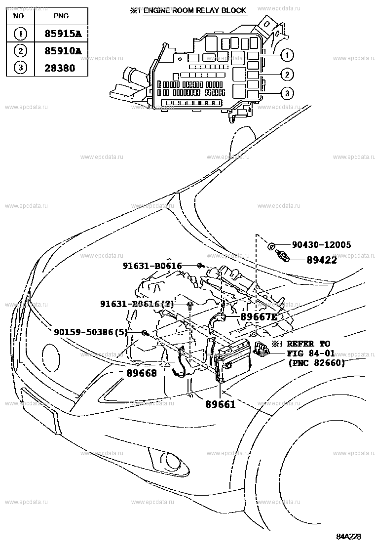 Click part number in the scheme or in the list: 89661 COMPUTER, ENGINE CONTROL89668 BRACKET, ENGINE CONTROL COMPUTER, NO.2 89667E BRACKET, ENGINE CONTROL COMPUTER, NO.1 9015950386 ** Std Part 91631B0616 ** Std Part 85915A RELAY, MAIN 85910A RELAY ASSY, CIRCUIT OPENING (FOR EFI) 28380 RELAY ASSY, FUEL PUMP ** 84-01 89422 SENSOR, WATER TEMPERATURE (FOR E.F.I.) 9043012005 ** Std Part |